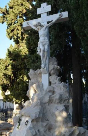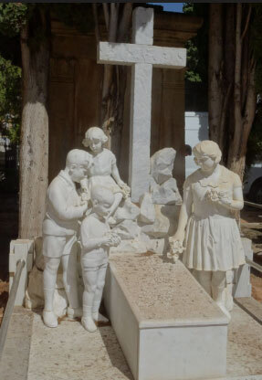 En este panteón podemos observar el conjunto escultórico de una pareja de “puttis helenísticos”.