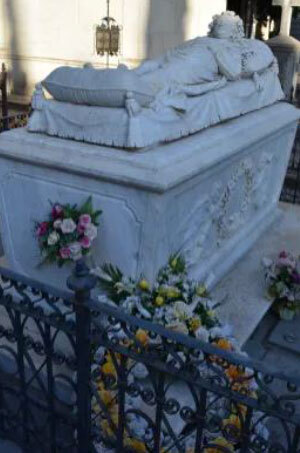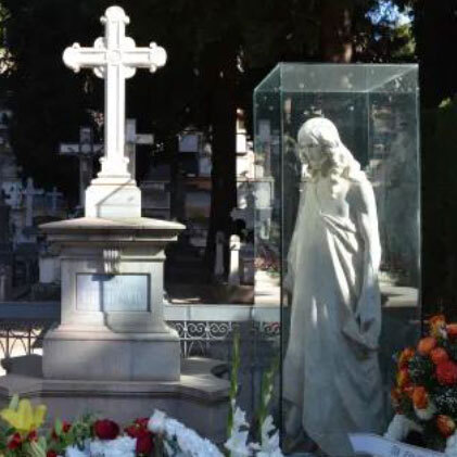 Realizado en 1881, este panteón el retrato de la escultura no corresponde con el de la difunta. Es conocido como “La novia” o “Bella durmiente”, y es que Dolores Mirasol suele amanecer con un ramo de flores puesto por parejas que van a casarse, esperando tener más suerte que ella el día de su boda.