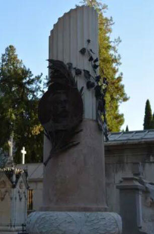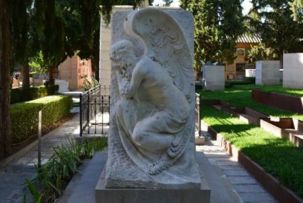 En el panteón de Melchor Almagro encontramos la obra del escultor Agustín Querol Subirats, que se inclina hacia el Realismo.